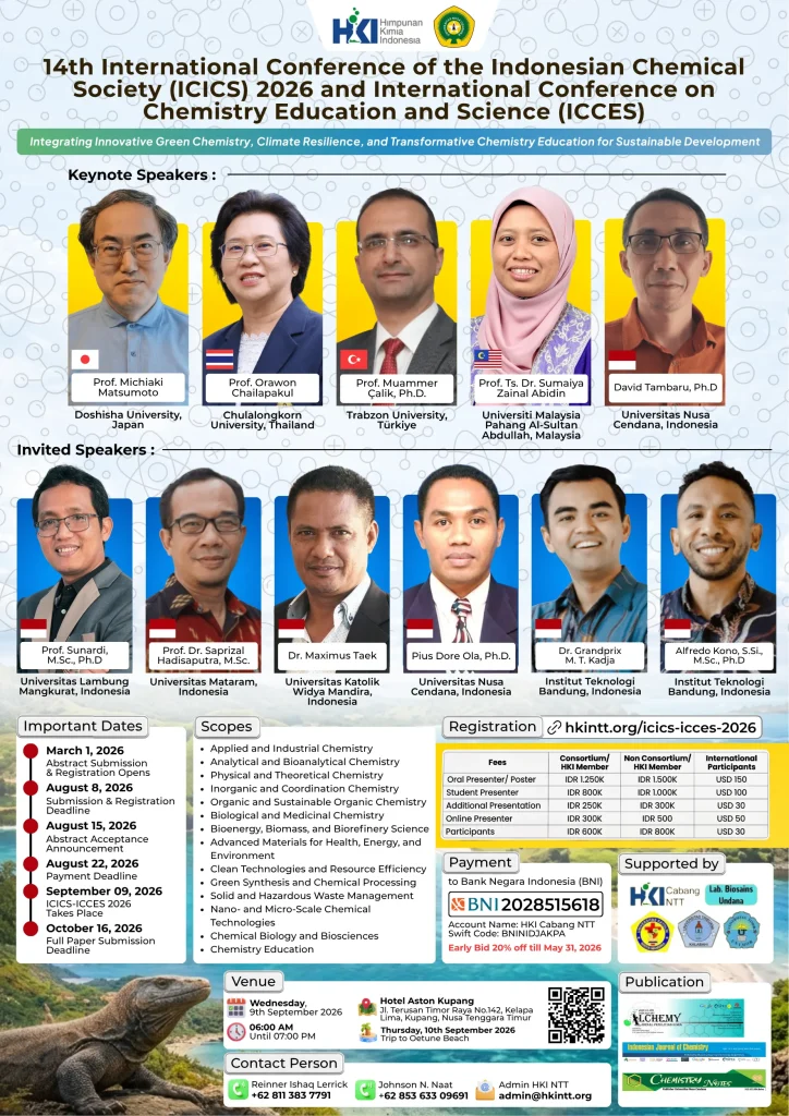 Himpunan Kimia Indonesia cabang NTT merupakan kepanjangan tangan HKI Pusat di daerah. HKI cabang NTT bermula sejak 2022 dan hingga kini beranggotakan lebih dari 100 anggota dengan latar belakang akademisi, praktisi, pendidik, dan mahasiswa kimia. Sebagai organisasi irlaba, HKI cabang NTT menyelenggarakan beragam kegiatan untuk mewujudkan visi untuk membina kemajuan ilmu kimia di Indonesia demi kesejateraan masyarakat Indonesia khususnya masyarkat Nusa Tenggara Timur. HKI cabang NTT merupakan rumah besar cendikiawan kimia NTT untuk mengembangkan talenta, jejaring, berbagi ide dan capaian hasil-hasil penelitian dalam bidang kimia secara lokal, nasional maupun internasional serta melayani pemerintah dalam memberikan pertimbangan, kajian dalam mewujudkan pembangunan daerah dan nasional.